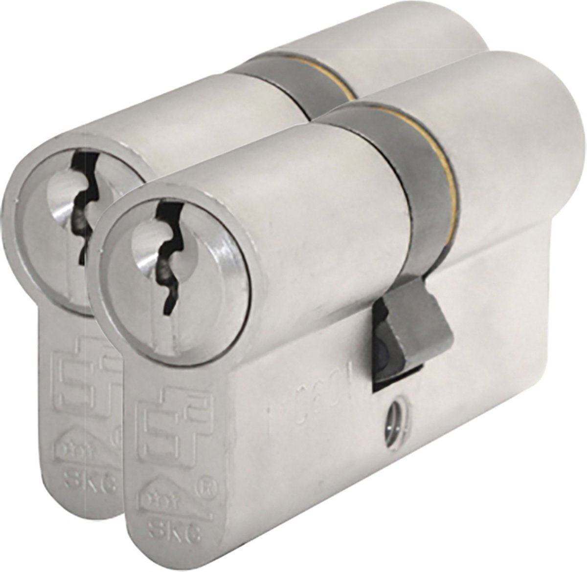 De cilinder heeft de finish ‘Vernikkeld’, wat hem een grijzige kleur geeft. Omdat het hier gaat om een dubbele cilinder, steekt deze door de deur en kun je hem aan beide zijdes bedienen met een sleutel. Deze cilinders koop je per set van twee. Zo ben je verzekerd van identieke, gelijksluitende cilindersloten in de cilindermaat 30/45, die je kunt bedienen met één sleutel.
